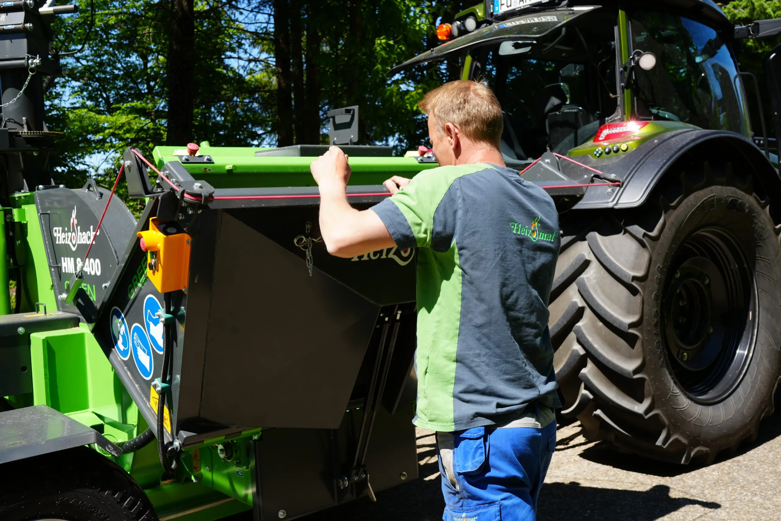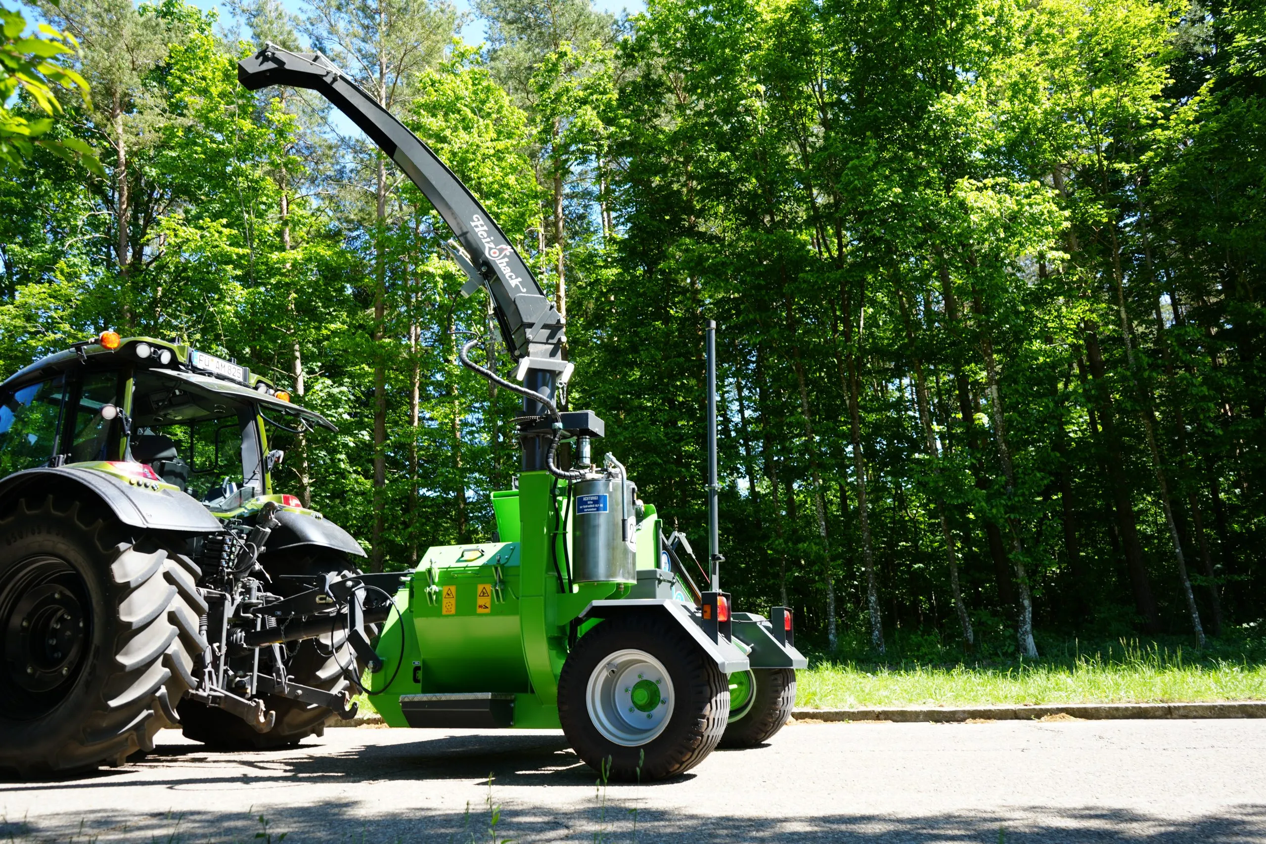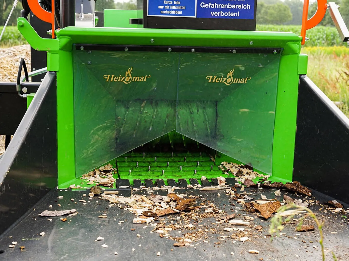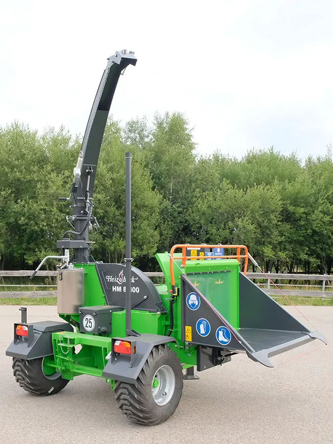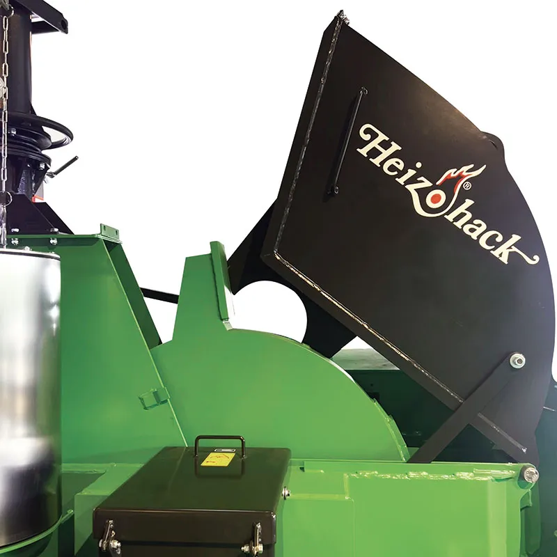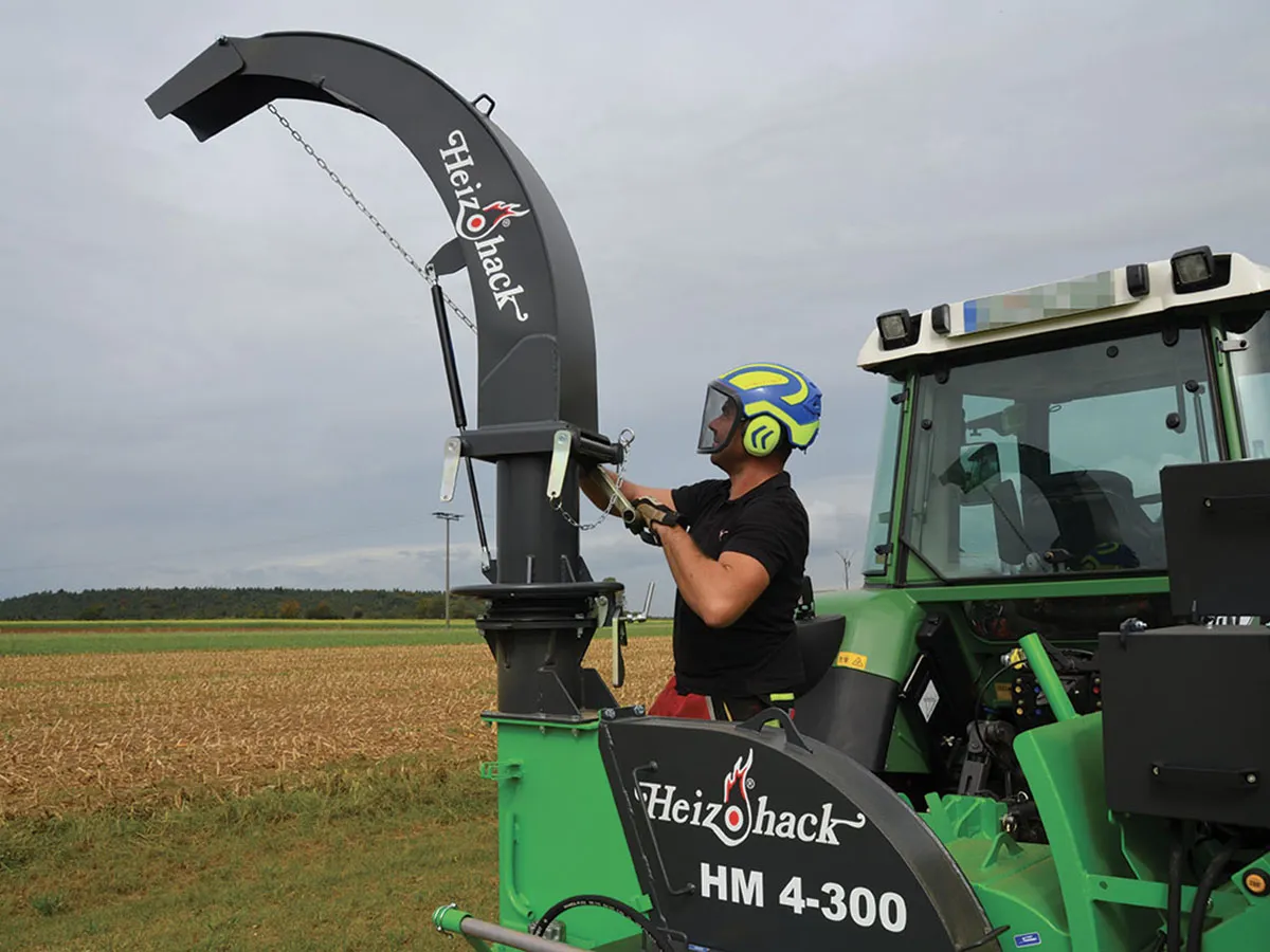 Avec une architecture en ligne de l’ensemble de la chaîne cinématique (prise de force du tracteur – rotor – volant de soufflerie d’éjection de 1 tonne – pompe hydraulique), la technologie de broyage HEIZOHACK des broyeurs de branches professionnel permet de broyer sans effort des troncs jusqu’à 40 cm avec une faible puissance d’entrainement pour une efficacité étonnante.