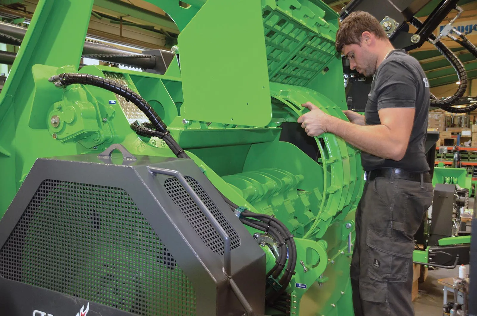 Un atout des déchiqueteuses HEIZOHACK est la facilité de changement des grilles de calibrage (15 min pour un opérateur seul) permettant une granulométrie de P16 à P63.