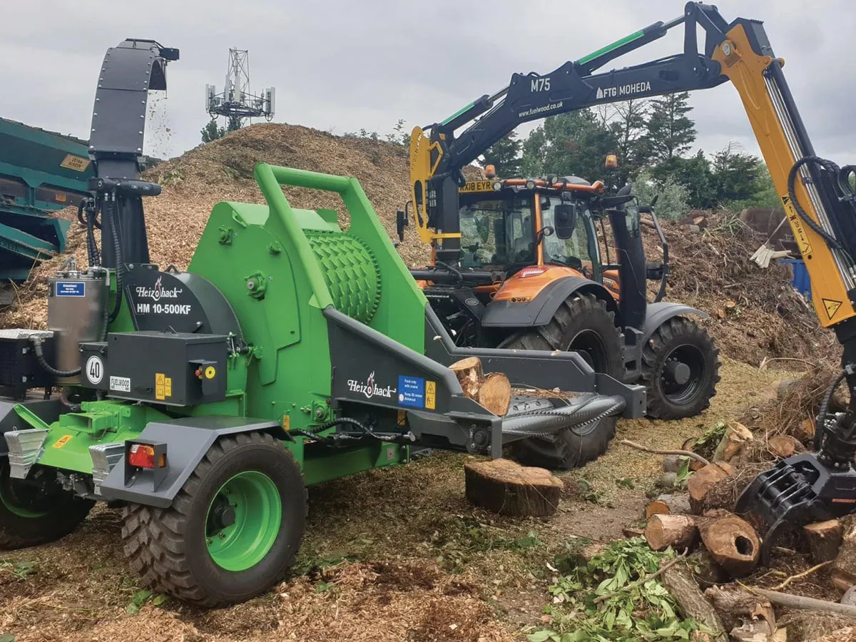 Déchiqueteuse bois professionnelle à chargement par grue Heizohack